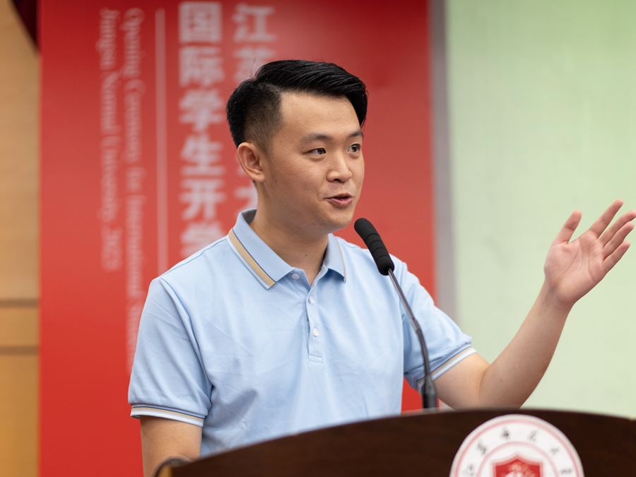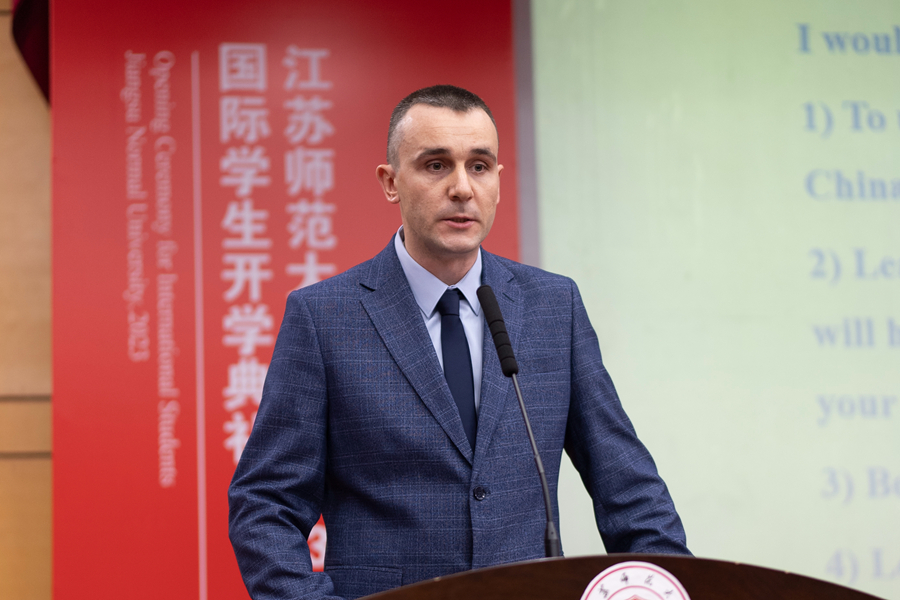 周汝光在典礼上致辞,代表全体教师向2023级国际新生的到来表示诚挚欢迎和热烈祝贺,并向他们介绍了江苏师范大学的发展概况和办学特色。周汝光希望同学们尽快适应新环境,他勉励大家:要坚持潜心向学,成为时代需要的新型国际化人才;要加强友爱互助,成为心怀大爱的友谊使者;要促进民心相通,成为文明互鉴的桥梁纽带。
