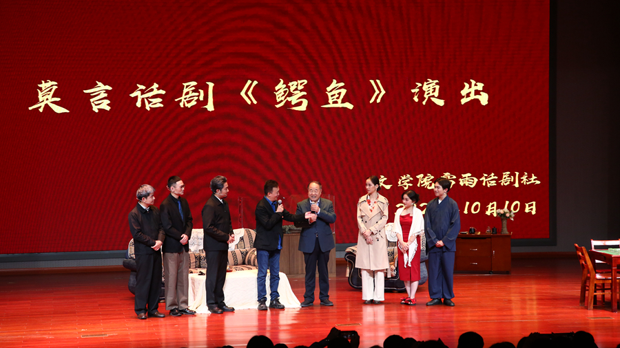 10日下午,在马可音乐厅举办了新时代文学论坛暨第52期“润德讲堂”:莫言报告会。在报告会第一阶段“青春剧场”单元,学生社团文学院雷雨剧社表演了话剧《鳄鱼》选段,受到莫言、央华戏剧艺术总监王可然等专家的肯定和鼓励。副校长张玉勤为王可然老师颁发了“校外美育导师”聘书。