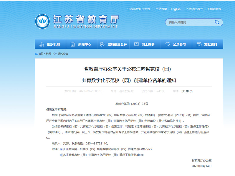 日前,江苏省教育厅办公室公布了江苏省第一批家校(园)共育数字化示范校(园)创建单位名单,徐州仅9所学校入选,我校位列其中。