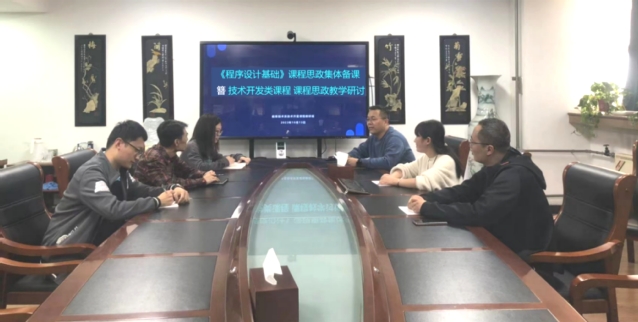 公开课结束后,教研组在908会议室召开《程序设计基础》集体备课和技术类课程课程思政建设教研会议,会议由胡永斌老师主持。第一阶段,参与活动的教师针对此次教学活动进行了评价,认为课程思政的引入一方面可以增加学生的学习兴趣,另一方面,有助于引导学生树立正确的国家观、民族观、人生观、价值观,案例选择上可以更加多元化。接着对《程序设计基础》的教学思路、教学内容、教学评价等进行了集体探讨。第二阶段,课程组围绕“育人目标、案例挖掘、教学方法、考核评价”四个方面,就技术类课程如何开展课程思政展开了热烈讨论。