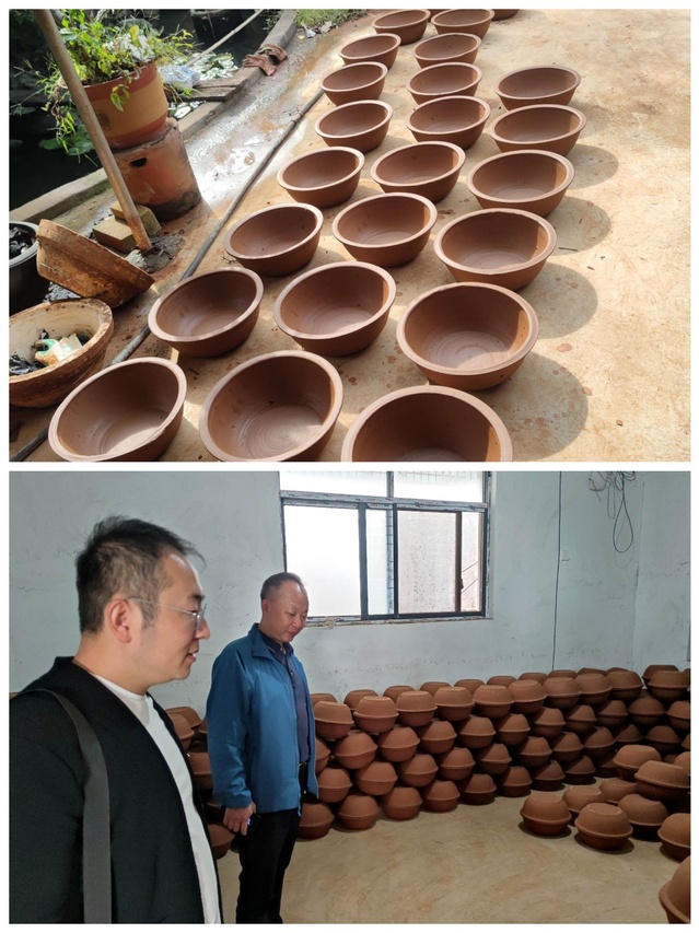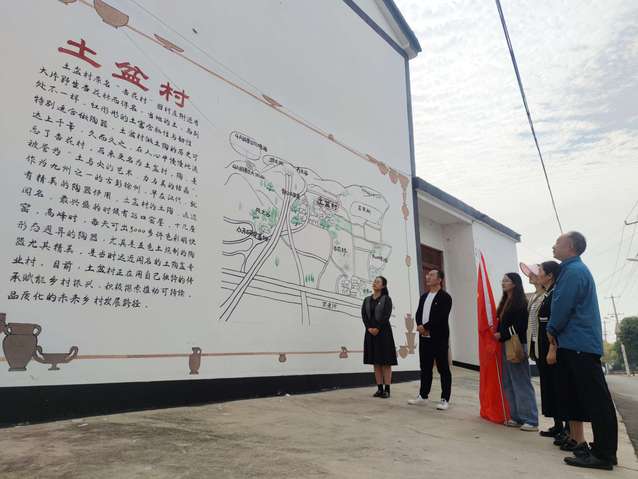 土盆村是贾汪区茱萸山街道小山子村的自然村。村庄三面环山,一面临水,农文旅资源丰富,党员们首先来到新农村实践站进行参观,了解了了土盆村的特色——土盆陶艺。土盆村做土陶的历史可达上千年,陶是被誉为土与火的艺术,力与美的结晶。作为九州之一的古彭徐州,早在汉代就有精美的陶器使用,土盆村的土陶近远近闻名。最兴盛的时候有28口窑屋,十几座窑,高峰是每天可出3000多件色彩明快、形态迥异的陶器。