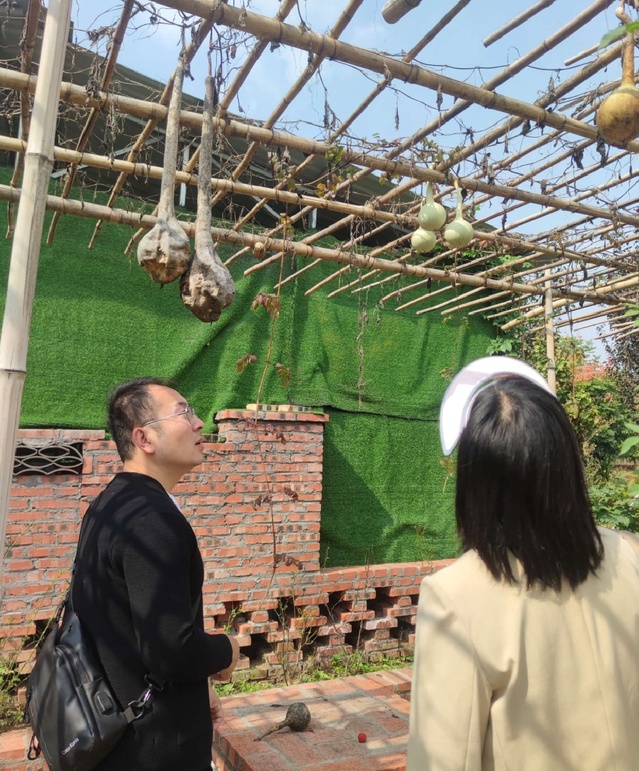 参观完毕,大家又前往了葫芦庄园,葫芦庄园位于土盆村村口,集种植、采摘、加工、购物、餐饮等于一体,走进葫芦庄园,满院的葫芦挂满枝头,党员们欣赏着形态迥异的葫芦,深刻的体会到土盆村将葫芦山庄,土陶制作,以及特色田园建设相融合的用心。
