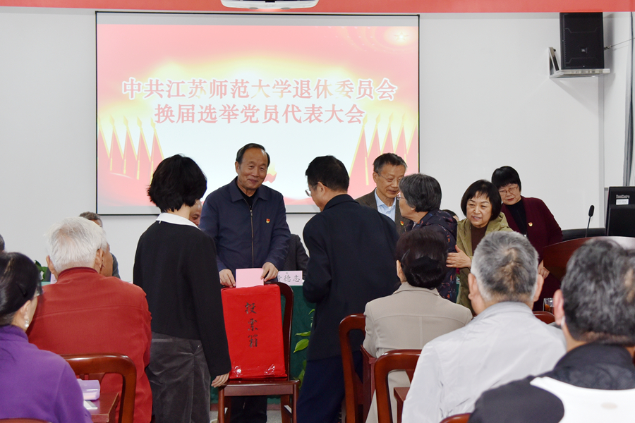 按照大会议程,大会审议通过了《中共江苏师范大学退休委员会工作报告》、《党费收缴、使用及管理情况报告》、《大会选举办法》和监票人名单,指定了选举计票人。全体参会党员代表按照选举程序,通过无记名投票方式选举产生了新一届中共江苏师范大学退休委员会。