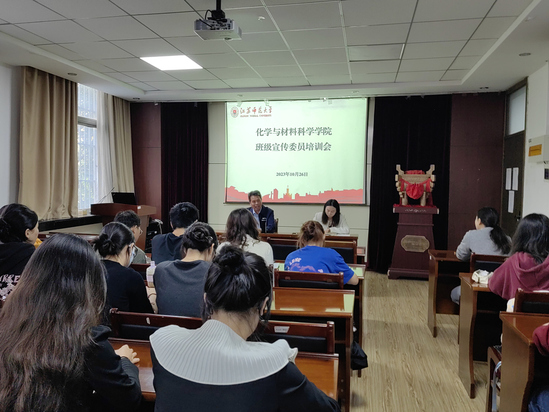 为深入学习贯彻习近平总书记关于党的宣传思想工作及意识形态工作的重要论述,充分发挥学生干部的管理作用,提升学院学生宣传委员的业务水平和能力,10月26日13:00,化学与材料科学学院在20#211会议室举办了班级宣传委员培训会。学院党委书记王香善教授担任主讲人,学院各班级宣传委员、学生组织宣传部门负责人参加了此次培训会。会议由辅导员崔沁宇主持。