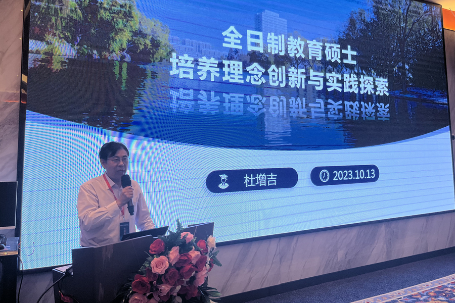 研讨会上,杜增吉作了题为《江苏师范大学全日制教育硕士培养理念创新与实践探索》的专题报告,主要围绕我校教育硕士研究生“U-S双主体”培养模式、质量工程建设、案例研发与案例教学、实践教学模式、联合培养基地建设等几个方面进行了实践探索经验及取得的相关成就分享,受到与会代表的广泛关注和一致好评。