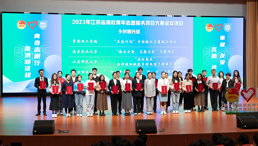 近日,2023年江苏省高校青年志愿服务项目大赛暨高校青年志愿服务研讨活动在南京邮电大学举办。本届大赛全省共有84所高校245个项目参赛,150个项目进入路演答辩环节。经专家评审,法学院张春艳、张杰老师指导的《“法治惠农”——法律援助赋能乡村电商志愿服务项目》荣获乡村振兴组金奖,生命科学学院方如萍、张岩行老师指导的《“园艺疗法”聚焦孤独症儿童社交障碍问题志愿服务项目》荣获阳光助残组银奖。大赛期间,我校作为代表高校在“志愿服务助力乡村振兴”研讨活动中发言。