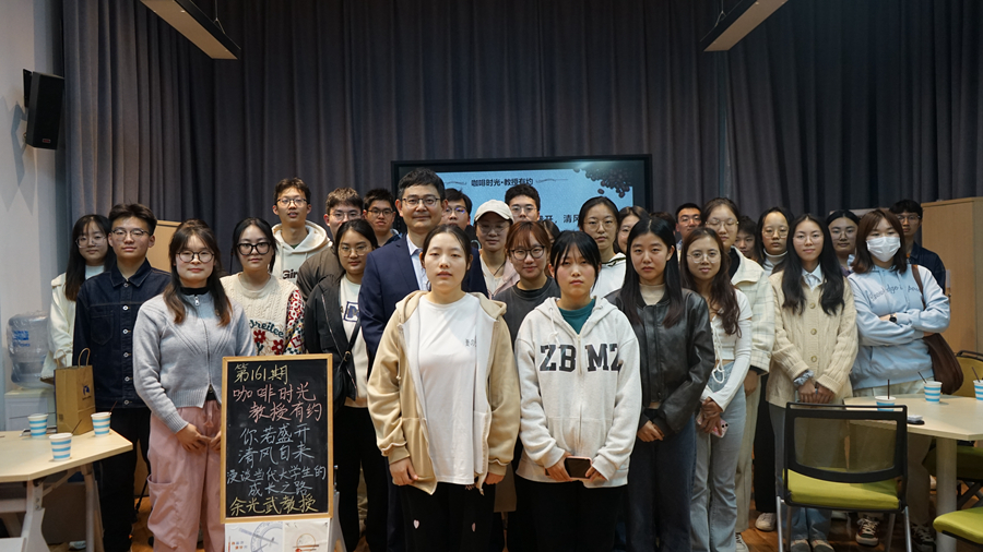 11月9日下午,第161期“咖啡时光·教授有约”活动在“六点汇”实践基地举行。余光武教授就“你若盛开,清风自来——漫谈当代大学生的成长之道”这一主题与在场同学进行了分享交流。