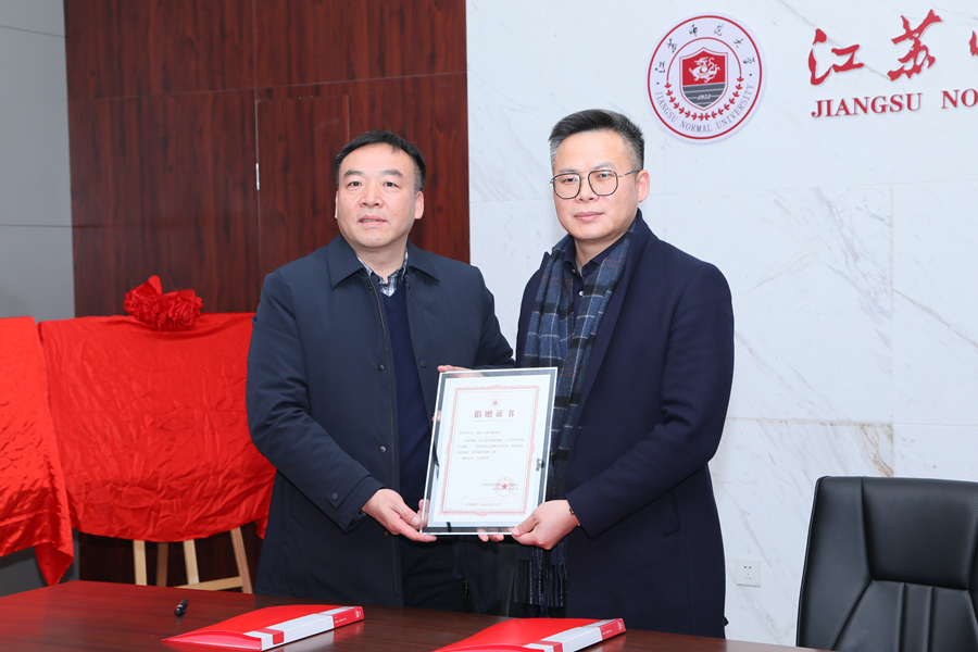 仪式上双方代表签署了捐资协议,颁发了捐赠证书。蔡国春、陈斌共同为“江苏师范大学教育法学研究中心”揭牌,刘广登与陈斌共同为“江苏师范大学党内法规研究中心”揭牌。