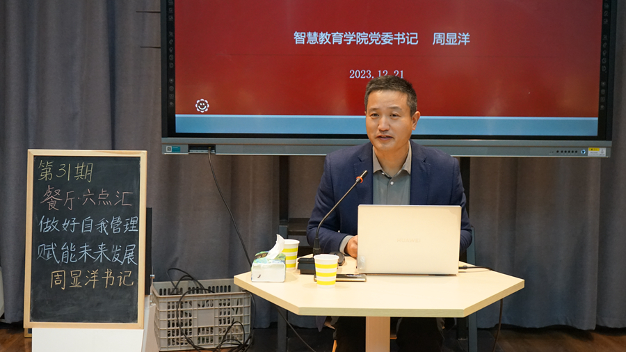 近日,第31期“餐厅·六点汇”活动在泉山校区六点汇实践基地举行。智慧教育学院党委书记周显洋就“做好自我管理,赋能未来发展”这一主题与在场同学进行交流。
