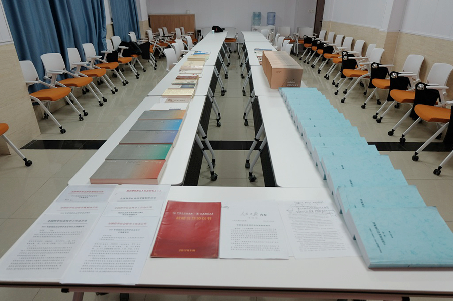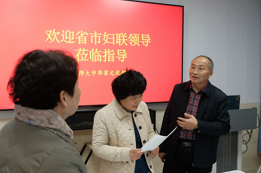 我校中华家文化研究院院长陈延斌教授向沈梅会长一行介绍了研究院成立以来在咨政建言、课题研究、社会服务、学术交流等方面取得的成效与进展。沈梅一行参观了研究院在中华家文化研究方面的成果。