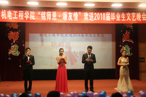 5月20日晚7:00,机电工程学院欢送2018届毕业生晚会在敬文报告厅举行。学院领导班子、院系主任及书记、专业老师代表、班主任及辅导员老师出席晚会,与2018届毕业生共同见证这一美好而重要的时刻。