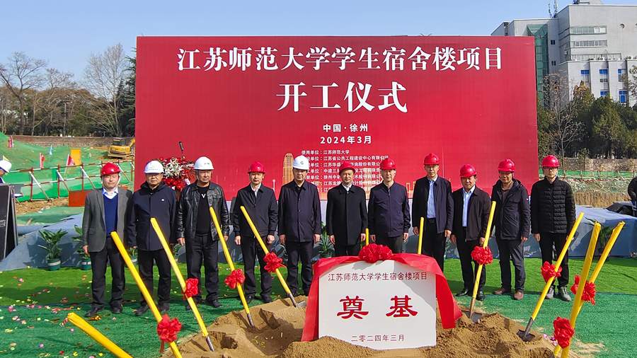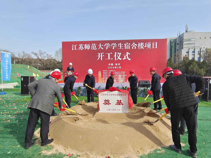 3月21日上午,我校学生宿舍楼项目开工仪式在泉山校区顺利举行。校党委常委、副校长张其飞,江苏省住房与城乡建设厅政府投资工程集中建设管理处副处长冯刚,江苏省公共工程建设中心有限公司党总支书记、执行董事陈海陆,中建三局华东分局副局长、江苏投资建设有限公司董事长夏大焰等出席仪式并共同为项目培土奠基。项目勘察单位、设计单位、监理单位、跟踪审计单位及我校基建处、后勤管理处、后勤集团等相关负责人参加了开工仪式。