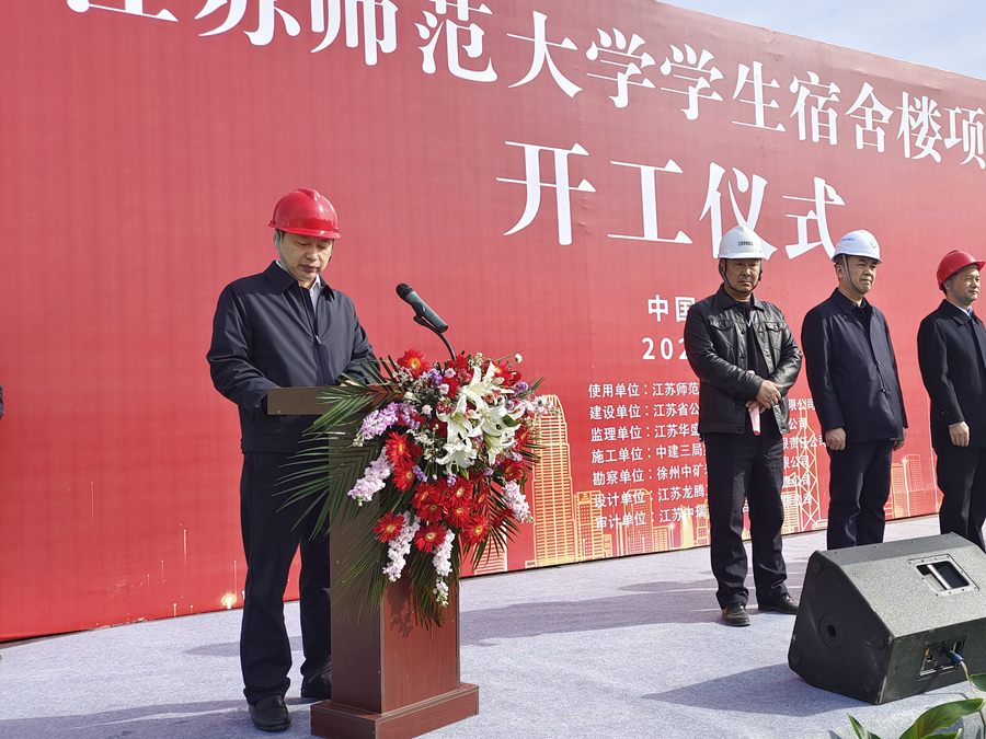 陈海陆在致辞中指出,江苏师范大学学生宿舍楼项目是省公建中心在徐州市铜山区开工的第一个集中建设项目,也是铜山区2024年度城建重点工程,更是省属高校学生宿舍建设重点项目。省公建中心对此高度重视,将秉持规范科学、专业高效、尽职廉洁的理念,坚持挂图作战、精细化管理,全面加大组织协调力度,攻坚克难,督促各参建单位优化施工方案、科学组织实施,提高项目管理的专业化水平,切实管控好项目建设质量、安全、进度和成本。