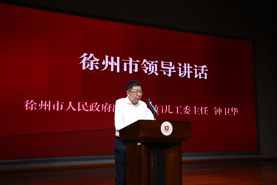 钟卫华代表徐州市委、市政府,向联盟的成立表示热烈祝贺,向长期以来徐州高校对徐州妇女工作的关心支持表示衷心感谢,向广大女教职工、女大学生致以亲切问候。他表示,妇建联盟的成立为服务知识女性、服务高校发展、服务徐州高质量发展提供了新的载体和平台,是推进徐州高校妇联组织建设的重要里程碑。希望各高校在坚定理想信念中激扬巾帼之志,坚持“党建带妇建”,以妇建联盟项目为抓手,创新工作机制,打造工作品牌,培育工作队伍,不断增强联盟的号召力、影响力和带动力;在推进联盟发展中贡献巾帼之力,推动高校妇联工作与建设产业强市、乡村全面振兴、推进创业创新等中心工作有机融合,打造新时代的活力妇联、实干妇联、开放妇联、暖心妇联、创新妇联;在弘扬时代新风中彰显巾帼之美,为女教职工、女大学生送去精准服务与暖心关爱,引导广大女教职工、女大学生积极践行社会主义核心价值观,树立正确的婚恋观、生育观、家庭观,保持自尊、自信、自立、自强的精神面貌,做良好社会风气的倡导者、实践者和推动者,努力成为学习型、知识型、创新型的新时代女性。