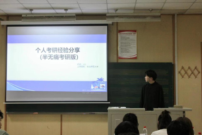 追风赶月莫停留,平芜尽处是春山。为进一步推进学风建设、激发我院学子考研热情、帮助低年级学生了解考研形势 ,4月25日下午,我院在23号楼303B召开了考研经验分享交流会。辅导员王艺璇老师、大三全体学生及大一大二有考研意向的学生参与会议。本次会议由学生会学习部部长段嘉颖主持, 2020级考研优秀学子王广、张仕林、代田园、毕一心做经验分享。