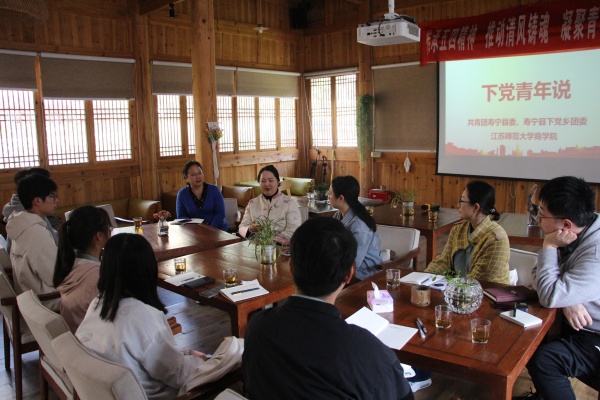 活动伊始,寿宁县人民法院党组成员、政治部主任郑万江作为主讲嘉宾,为现场的青年们带来了一场关于冯梦龙文化、廉政思想的精彩分享。他用生动的语言和鲜活的事例详细阐述了冯梦龙文化的深刻内涵和其廉政思想的时代价值,并分享了如何在生活和工作中传承推广冯梦龙文化,大力弘扬“闽东之光”。接下来,商学院党委副书记吴夏蓉以“聚青春之光,写时代华章”为主题,分享了江苏师范大学商学院团学工作的经验和成果,与下党乡的青年们进行了深入的交流和互动。活动最后,参加活动的青年们围绕此次活动主题进行了热烈的分享交流。来自下党乡的青年依次分享他们的成长经历、创业故事以及对未来的憧憬。课题组的同学们通过讲述宣传册上的内容,与下党青年分享了关于如何通过新商科的理念来打造乡村品牌、提升农产品的附加值的想法。双方表示,将进一步加强合作与交流,共同探索新商科助力乡村振兴的路径。