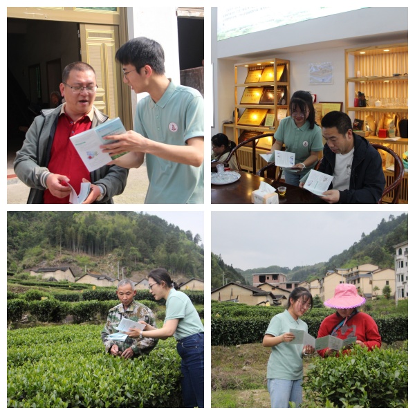 课题组深入沿街店面、消防队、茶园等地发放手册,因地制宜开展宣讲活动。在街上,师生们从金融本质、保险、理财等方面知识,用通俗易懂的语言开展宣讲;在茶园,课题组与负责人进行座谈,提出要加强传统产业的创新和升级,提高产品附加值和竞争力。同时,要充分发挥地方资源优势,打造特色乡村旅游品牌,吸引更多的游客和投资者;并且深入茶园为茶农讲解如何通过合理的理财管理增加收入;在消防点,课题组详细了解了下党乡走上脱贫致富振兴的“蝶变”之路和下党执勤点为防止下党乡居民因灾返贫所做的举措和成效,围绕乡村振兴建设主题进行进一步研讨。