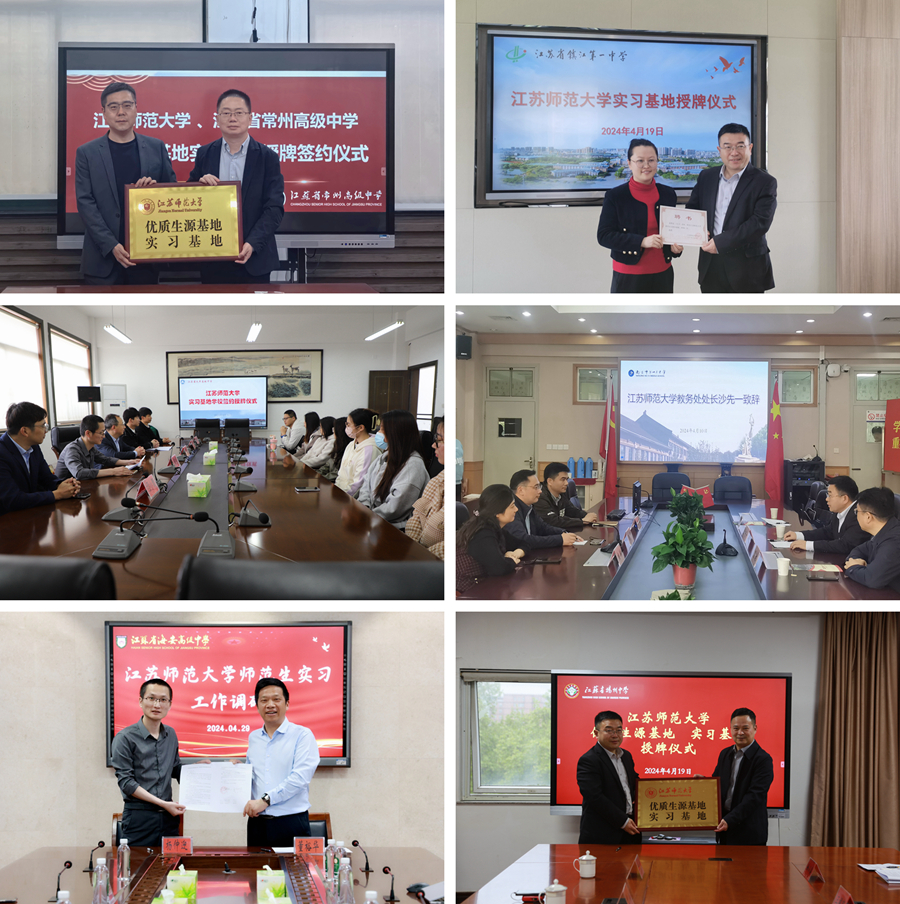 为进一步加强师范生教育实习基地建设,拓宽师范生教育实习、就业渠道,2024年4月-5月,校党委常委、副校长赵鹏带队,教务部牵头组成6个工作组,分别到南京、常州、连云港、苏州、无锡、镇江、扬州、南通、盐城地区开展实习基地拓展工作,期间共走访20家单位,并先后与南京市江浦高级中学、常州高级中学、苏州高新区第一中学、江苏省镇江第一中学、江苏省扬州中学、无锡市洛社高级中学、江苏省海安高级中学等17所中学进行“教育实习基地”签约暨授牌活动。各有关单位负责同志参与了相关活动。