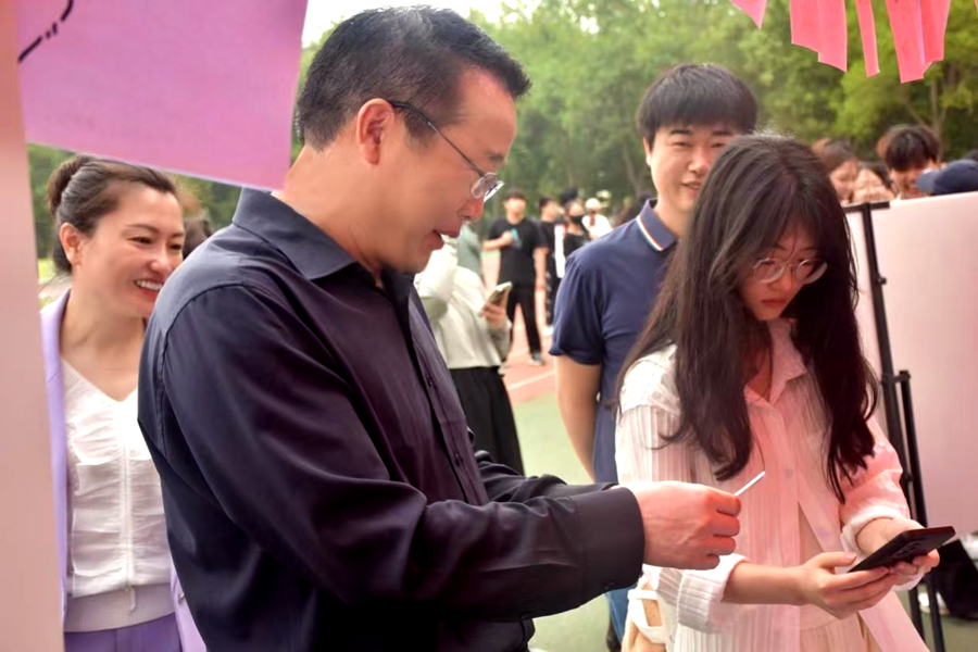 开幕式上,张玉勤打响发令枪,宣布江苏师范大学心理健康教育活动正式开始。本次活动包含各学院和心理健康教育中心举办的非遗漆扇DIY、趣味投壶、心境漫游、趣味运动会等内容,旨在通过互动式、体验式、浸润式的教育活动,促进同学们身心健康全面发展。启动仪式后,各学院师生代表携手同行,共同参与活动。活动现场,同学们积极参与、气氛热烈,在欢声笑语中舒缓情绪、释放压力。