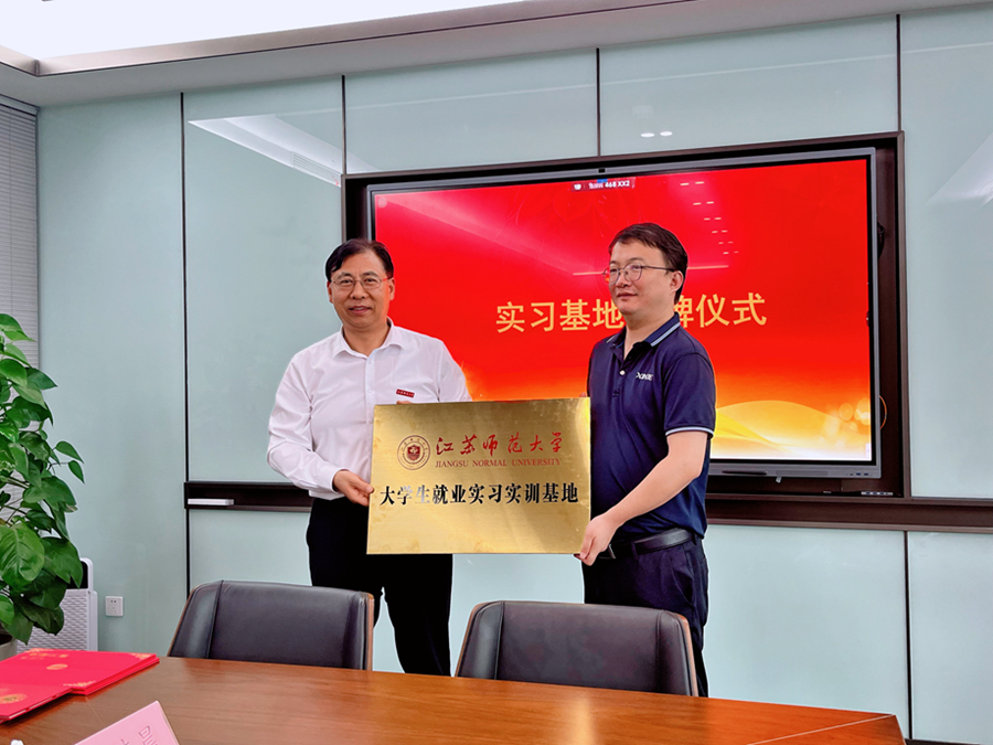 经过充分洽谈,学校与各企业达成合作共识,并举行了“江苏师范大学大学生就业实习实训基地”授牌仪式。