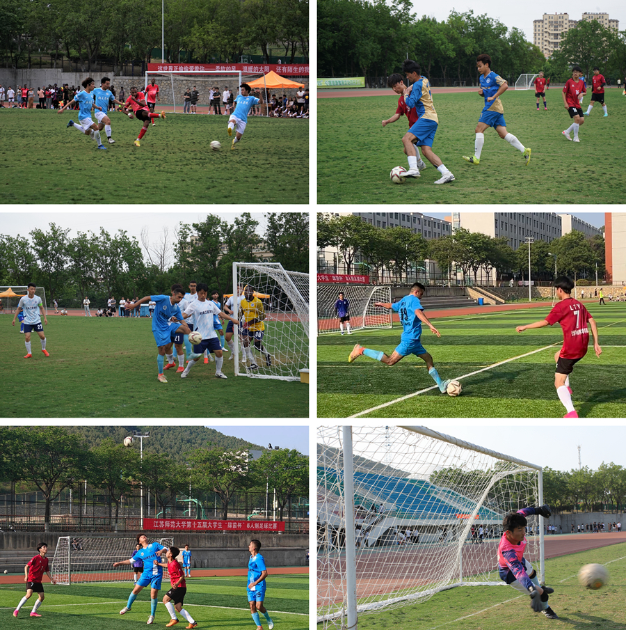 5月29日下午,江苏师范大学第十五届大学生“绿茵杯”8人制足球比赛圆满闭幕。本次比赛由江苏师范大学体育运动委员会主办,校学生工作处、校团委协办,体育学院承办。赛程历时8天,进行了52场比赛,共有来自机电工程学院、国际学院、科文学院、敬文学院等20支代表队的270名运动员参赛。