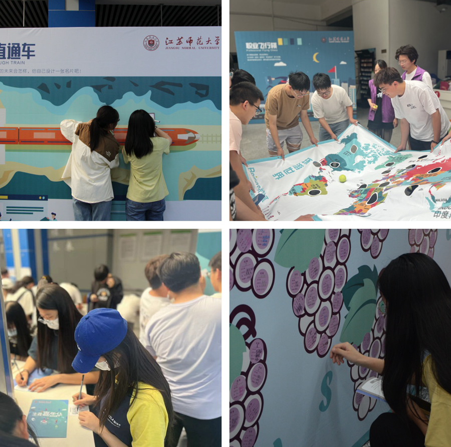 本次活动将职业生涯规划理论元素进行集成,为学生提供各种直接参与、有所体验、激发行动的大型互动游戏,共设自我探索、职业探索、能力充电和为梦想前行四大区域,包括“性格彩虹图”“职业飞行棋”“生涯启发器”等10个游戏关卡。每一个闯关游戏背后均有相关的生涯理论支撑,层层闯关。同学们在体验活动乐趣的同时,逐步增强学生的主观感受,激发学生职业规划兴趣,促进其生涯自助。