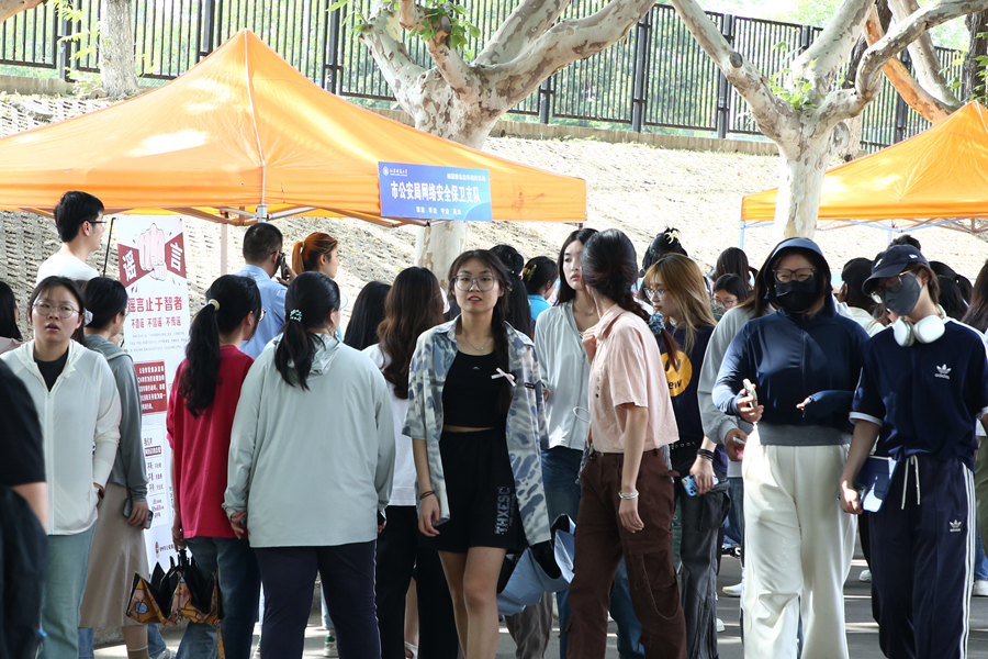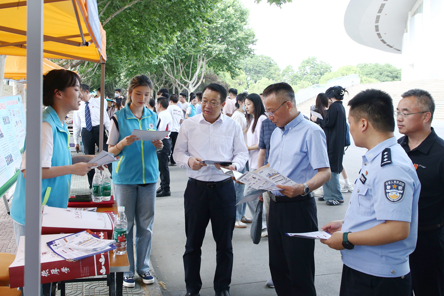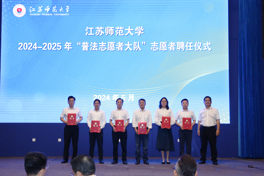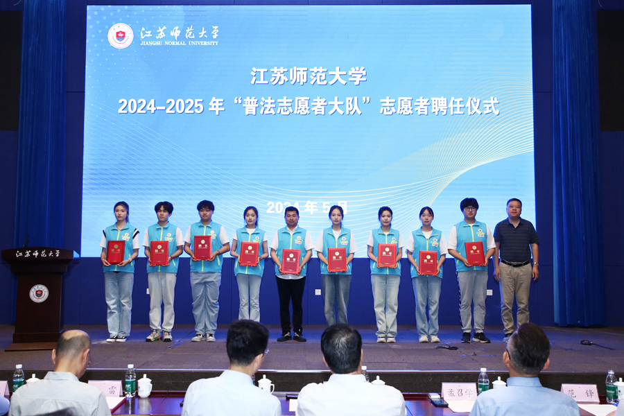 学校相关职能部门负责人为2024-2025年普法宣传指导员和“普法志愿者大队”志愿者颁发聘书。聘任仪式结束后,来自市委机要保密局、市知识产权保护中心、市反诈中心、市公安局禁毒支队、网安支队、铜山区劳动人事争议仲裁院的普法宣传指导员携手普法志愿者们在至善路开展了总体国家安全观、禁毒知识、网络安全、防诈反诈、知识产权保护、劳动者权益保护等现场普法宣传教育活动。活动现场人头攒动,反响热烈。