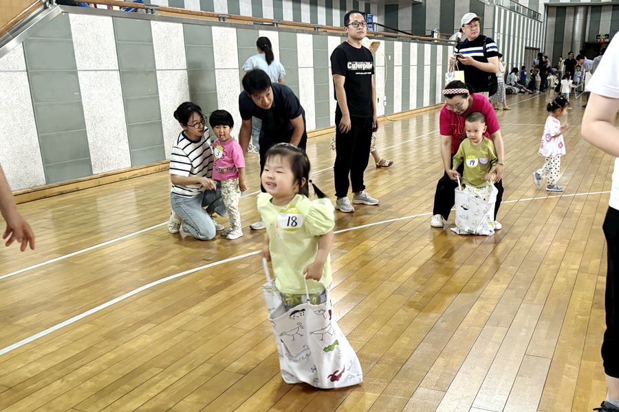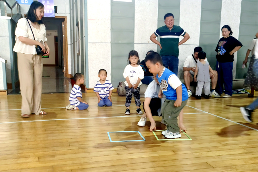 本届亲子运动会主题是“运动悦童心 亲子伴成长”,活动预告一经发布,就受到广大青年教职工的热切关注和积极响应。运动会分为儿童组和成人组两个组别,参赛选手全部由学校教职工及6岁以下的子女组成,最小的孩子只有6个多月,部分家庭携两位子女参赛。根据选手的年龄特点,两个组别分设了袋鼠跳、吉祥娃娃、推铁环、拔河等10多个妙趣横生的项目。家长和孩子们并肩面对每个游戏的挑战,小运动员们天真精彩的表现和家长重温童乐的喜悦相映成趣,展现了亲情互动的欢乐瞬间。加油声、喝彩声此起彼伏,充满了体育馆的每个角落。