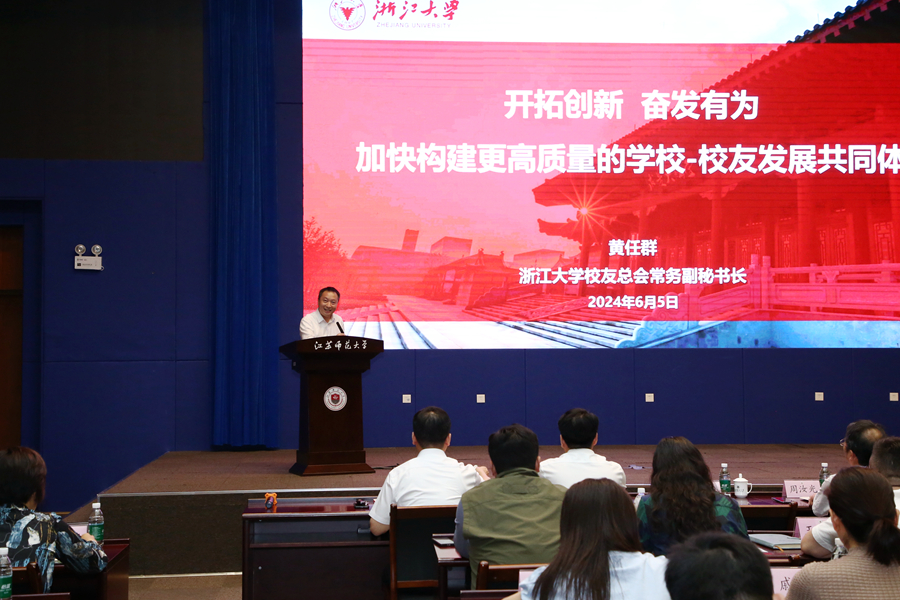 浙江大学校友总会常务副秘书长黄任群应邀作了题为《开拓创新,奋发有为—加快构建更高质量的学校—校友发展共同体》的专题报告,以生动的案例和详实的数据介绍了世界一流大学和浙江大学校友、基金工作成功做法和先进经验,阐述了校友工作对学校和校友事业发展的重要性,并就如何做好校友工作、加快构建更为紧密的学校-校友发展共同体作了重点阐释。