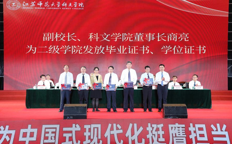 副校长商亮为二级学院院长发放毕业证、学位证。科文学院领导班子成员分别致辞、宣读学位授予和优秀毕业生表彰决定,并向优秀毕业生代表、升学学子、“毕业生之最”、毕业班校友联络员代表等颁奖。毕业生代表和学生家长代表分别上台发言。