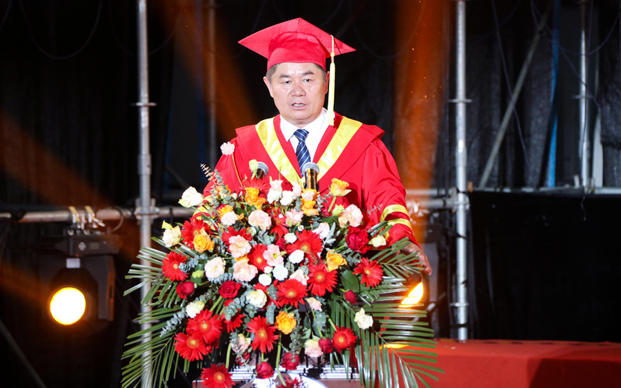 校长周汝光以《肩负时代使命谱写青春华章》为题,深情寄语毕业生。他指出,近年来科文学院办学实力日益雄厚,服务地方能力显著增强,全国独立学院综合排名不断攀升。学校始终是科文学子实现学术梦想的理想之地,一定会为每位有志深造的科文学子提供更多机遇和更好平台,也将一如既往地支持科文学院的建设和发展,关注、关心科文学子的成长成才,永远做科文学院和科文学子的坚强后盾。他希望广大学子永葆“崇德、求真、至善、尚美”的科文品质,不断磨练意志、锤炼品格,以豁达向上的姿态迈向人生征途,追求更有高度、更有境界的人生,在新的人生征程中牢记党和人民的期望与嘱托,在担当中历练,在尽责中成长,勇做走在新时代前列的奋进者、开拓者、奉献者。