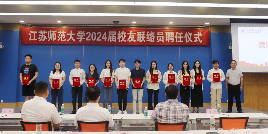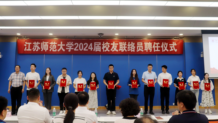 会上,相关领导介绍了校友联络员的工作职责,宣读了2024届校友联络员聘任文件,并为学院校友工作联络人、研究生和本科生校友联络员代表颁发聘书。文学院学科教学专业硕士研究生张益铭同学作为2024届校友联络员代表发言,她深情回忆高中数学老师、大学班主任、研究生导师等一批“江苏师大人”对自己成长发展的影响,表达对母校和老师的深深感恩,表示将时刻铭记“江苏师大人”身份,不负学校重托,履行好校友联络员职责。