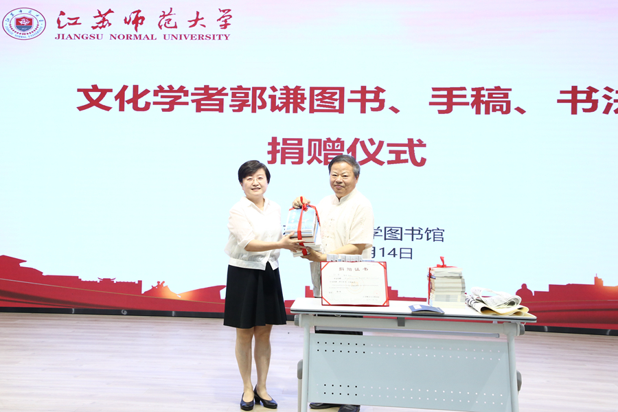 6月14日上午,我校在路演大厅举办了文化学者郭谦图书、手稿、书法作品捐赠仪式。校党委常委、副校长娄峥嵘,著名文化学者、中国书画院院士郭谦及夫人邢志玖,郭谦在徐好友程淼先生,校图书馆主要负责同志及相关工作人员和学生代表共同见证了捐赠仪式。