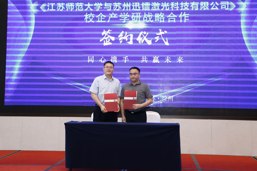 会上,中国科学院上海光学精密机械研究所范滇元院士作了题为“中国激光产业机遇与发展”的主题报告;省国防科学技术工业办公室副主任卢载贵、苏州迅镭激光科技有限公司董事长颜章健、奥普天成(厦门)光电有限公司董事长刘鸿飞、江苏华兴激光科技有限公司总经理罗帅分别作行业领域报告;徐州市高新技术产业开发区负责同志进行了徐州市产业发展情况及政策环境推介;上海交通大学和江苏师范大学分别介绍了相关领域科技成果;有关企业介绍了有关技术研究应用及需求情况;江苏师范大学分享了校地产学研合作经验;江苏师范大学物理与电子工程学院分别与苏州迅镭激光科技有限公司、奥普天成(厦门)光电有限公司、江苏华兴激光科技有限公司签订校企产学研战略合作协议。