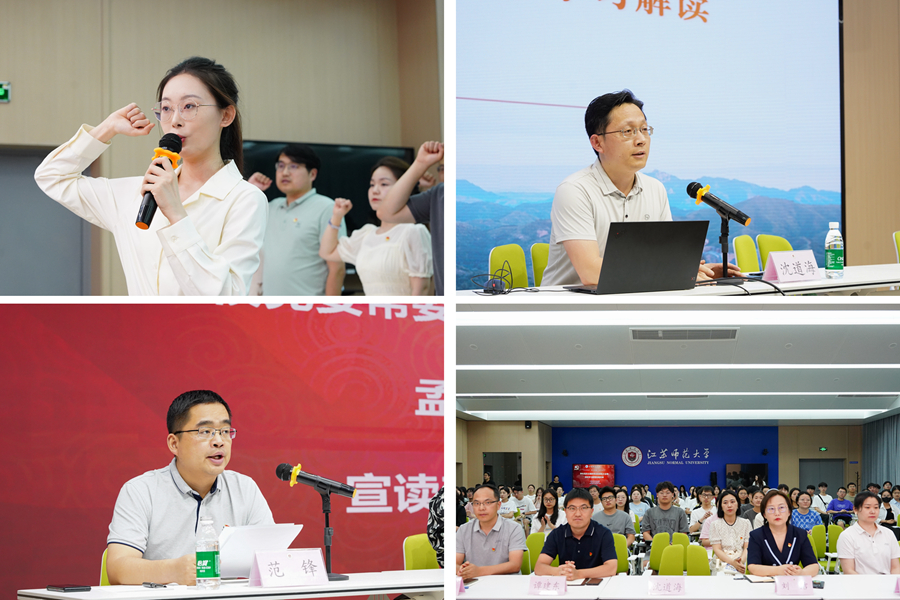 值中国共产党成立103周年之际,7月1日下午,江苏师范大学在路演大厅举办“学思践悟·凝心铸魂·知行合一”学生党员主题教育总结表彰大会暨党纪学习教育专题党课。学校相关职能部门负责人、各学院党委副书记、学生党员以及发展对象代表约120余人参加。