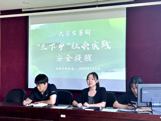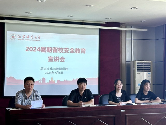 7月6日下午,历史文化与旅游学院召开2024年暑期留校学生安全教育宣讲会。学院党委副书记杜登、辅导员老师王亦男、赵宇、于雯静及本科生、研究生全体暑期留校学生参会。会议由杜登副书记主持。