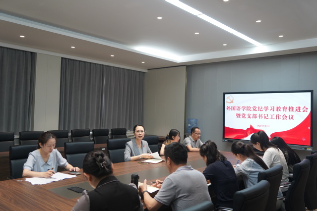 7月5日上午,外国语学院召开党纪学习教育推进会暨党支部书记工作会议。学院全体党部书记参加会议。会议由学院党委书记庄园主持。