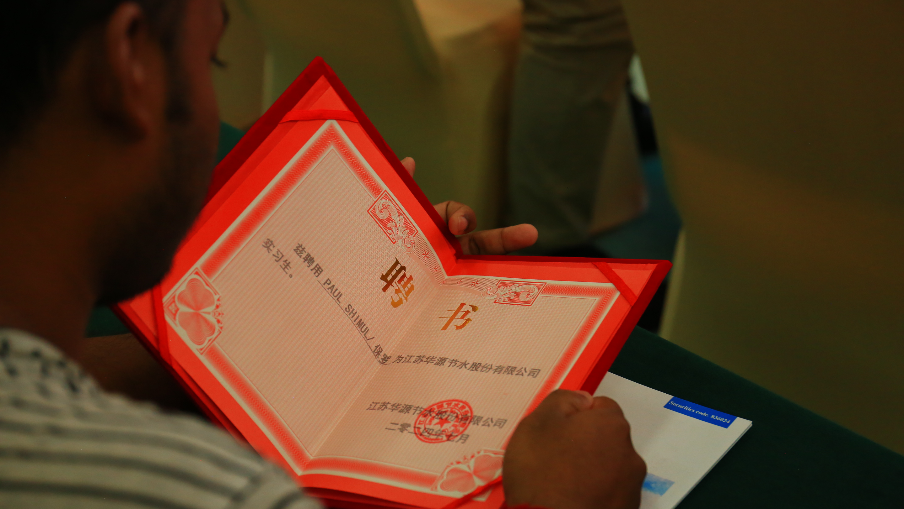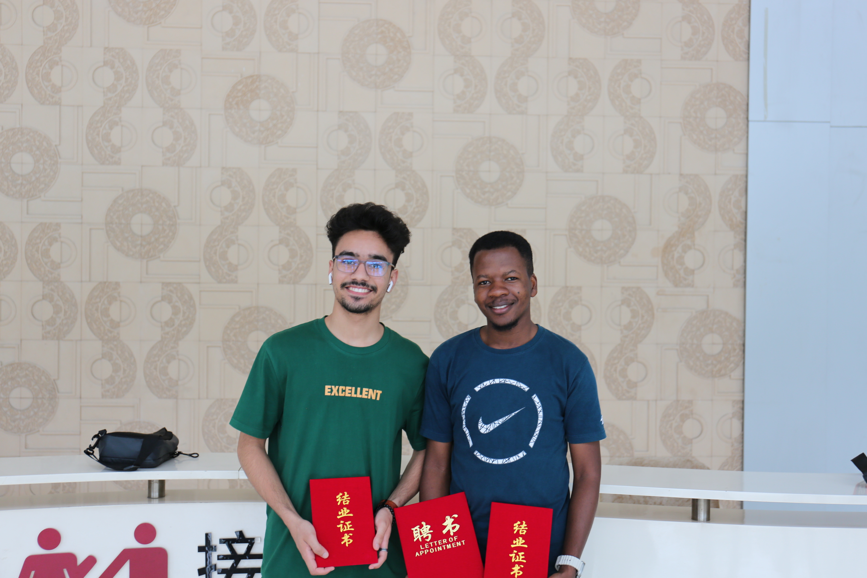 结业典礼上,邱志鹏董事长为5名表现优秀的学员颁发企业实习生聘书,侯铁建院长为留学生颁发结业证书。鼓励他们继续精进学业,成为连接中国与世界的坚实桥梁。