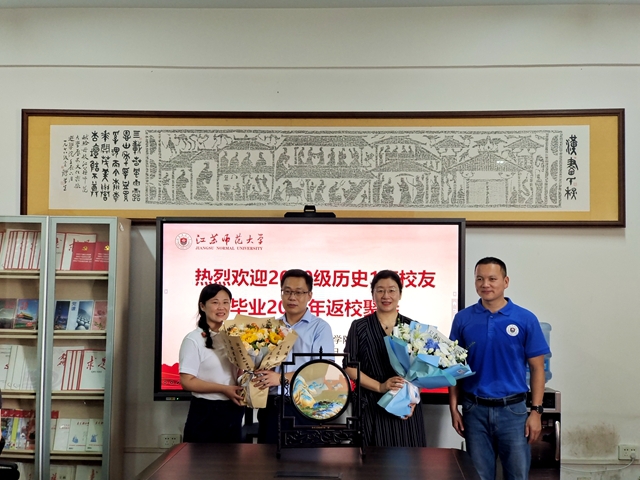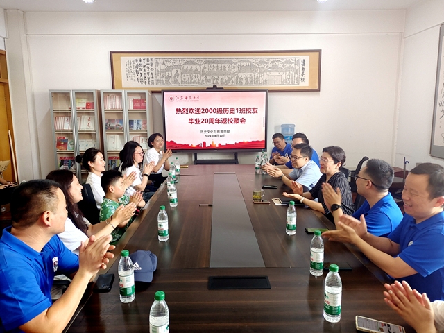 2024年8月10日,历史文化与旅游学院2000级历史1班校友毕业20周年返校聚会在学院412会议室举行。院党委书记戚洪、院长刘德州出席活动。