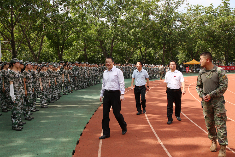 张玉勤在慰问中向承训部队长期以来对我校国防教育工作特别是军训工作的大力支持和帮助表示感谢,对承训官兵辛苦付出表示敬意,他希望学校和部队双方加强沟通协调,严格按照军训大纲要求,紧扣训练计划,保障军训工作圆满完成各项任务,在国防教育和育人成效上取得新的突破。在查看军训情况时,张玉勤与伴训的学生进行交流,了解学生的身体状况、入校后的生活与思想状况等,勉励全体参训同学克服困难、不怕吃苦,养成良好的习惯,锤炼过硬本领,在大学学习和生活中取得新的成绩。