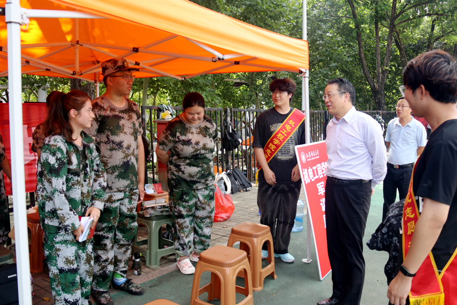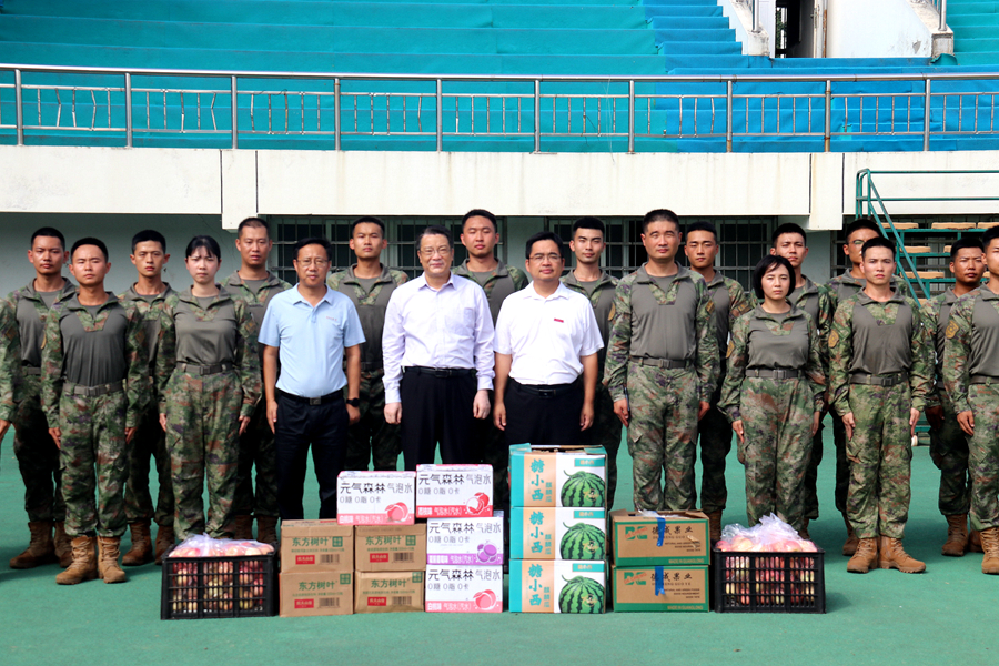 9月20日上午,校党委常委、副校长张玉勤到学生军训场地走访慰问承训部队教官和参训学生,党委学工部、武装部负责同志,部分学院党委副书记、国防教育辅导员陪同参加活动。