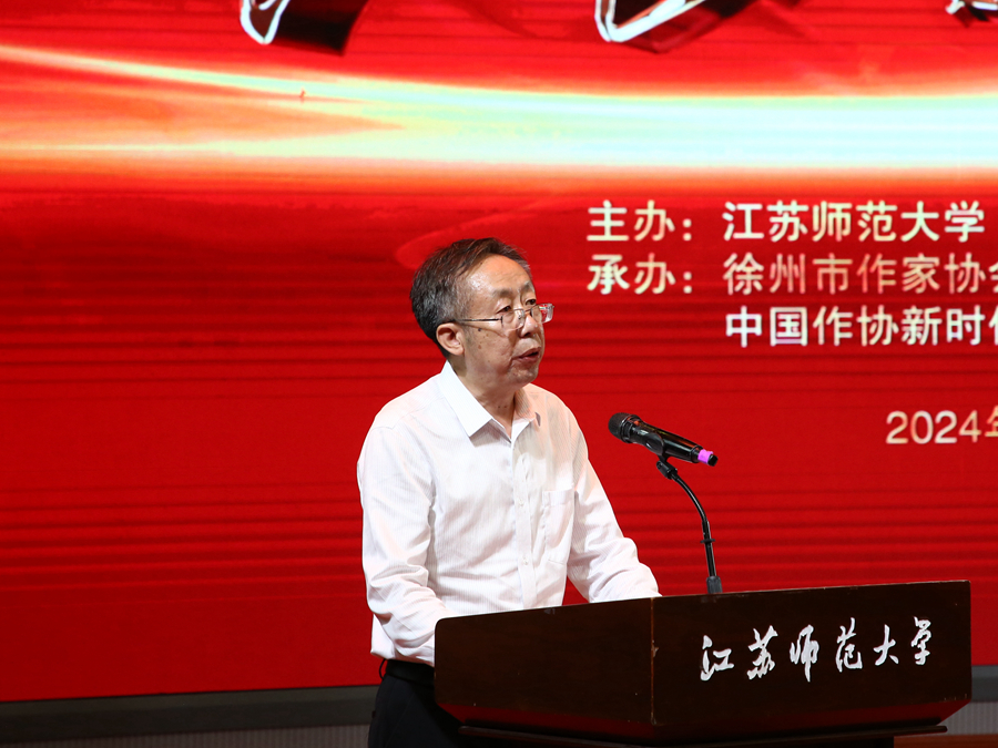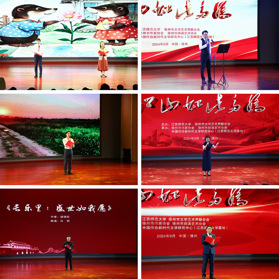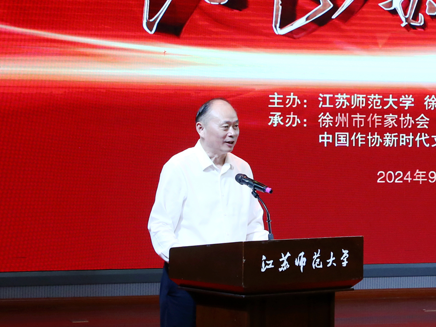 方忠代表江苏师范大学和徐州市作家协会致辞,向出席活动的领导、嘉宾以及演出的作家、朗诵家表示热烈欢迎和诚挚问候。他指出,伟大中国人民在伟大的中国共产党领导下,75年朝乾夕惕、栉风沐雨,书写了人类发展史上的伟大传奇。伴随着新中国前行的铿锵步伐,江苏师范大学始终坚持社会主义办学方向,坚守立德树人初心使命,砥砺奋进、坚志勇为,努力建设特色鲜明、国内一流、国际知名的高水平师范大学。依托中国作协新时代文学研究中心(江苏师范大学基地),学校在文学研究与创作方面取得了一批重大成果。在此基础上,学校将进一步深化同徐州市作家协会的交流与合作,用心用情用力讲好中国故事、以文艺精品奉献人民。