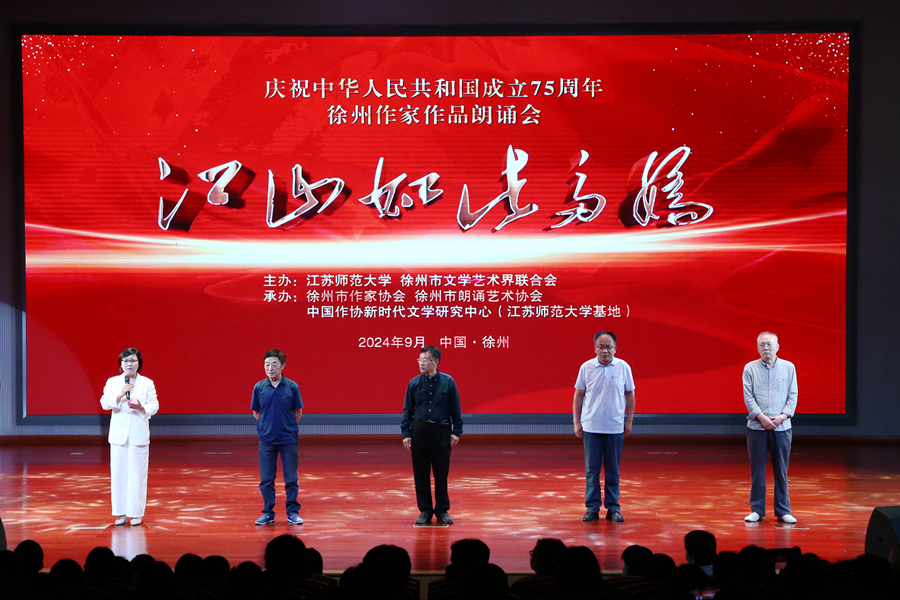 用文学讴歌伟大的时代,用深情的朗诵、诗性的语言,书写新时代中华民族伟大复兴的壮丽篇章,在全场热烈的掌声中,庆祝中华人民共和国成立75周年“江山如此多娇”——徐州作家作品朗诵会圆满落幕。