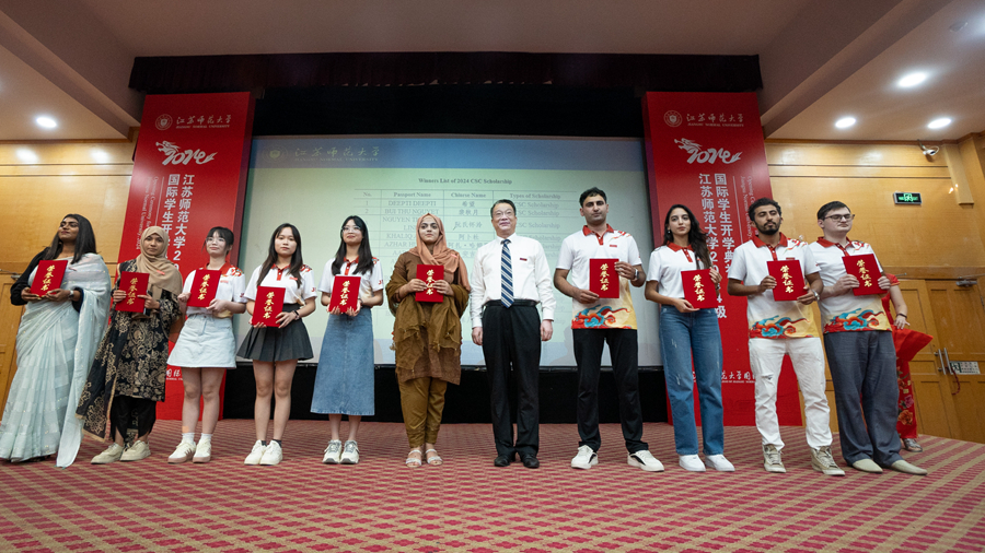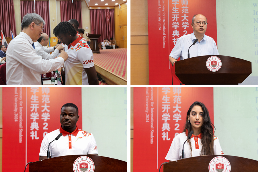 张玉勤为中国政府奖学金学生代表颁发荣誉证书。与会领导为2024级国际学生代表佩戴校徽。国际学院党总支书记董海宁主持典礼,国际学院院长侯铁建、教师代表蔡冰、老生代表AUDAX ABIHUDI、新生代表AARJI HIBA分别在典礼上发言。师生们表示在未来苏师学习之旅,教学相长,共同擦亮“留学苏师”品牌。