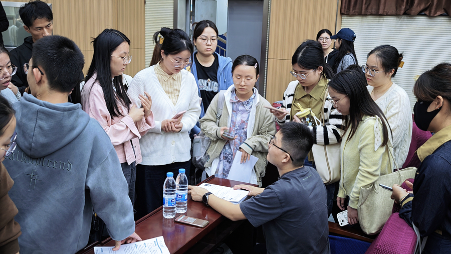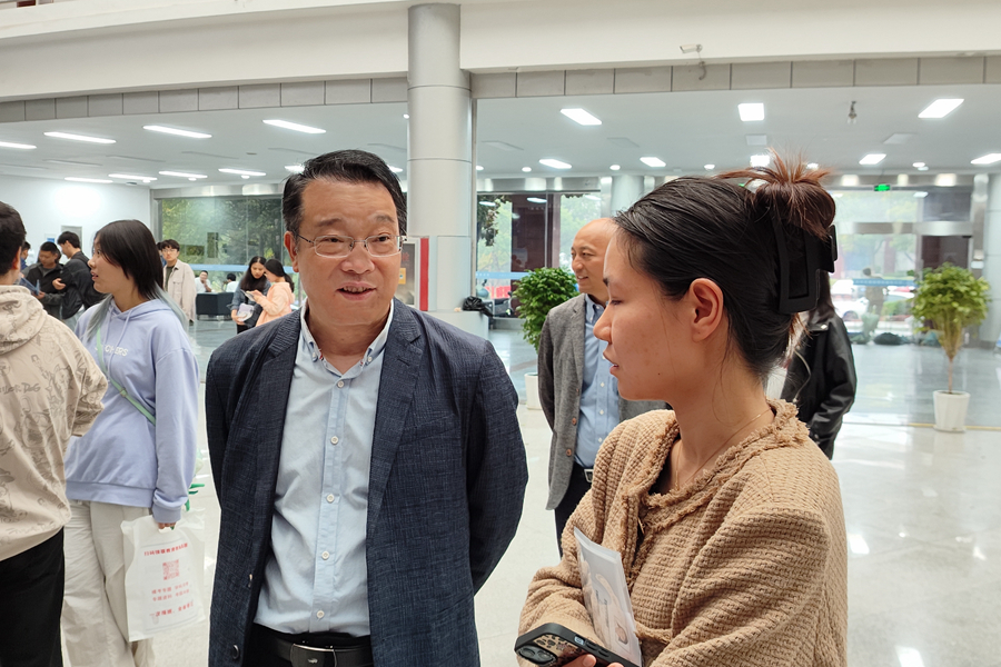 仪式结束后,张玉勤一行到第二期“月末人才集市”暨苏州市专场招聘现场,与招聘单位人员和求职学生交流交谈,了解企业人才招聘条件和需求趋势变化,鼓励毕业生科学设定求职目标、把握求职黄金期、争取早日就业。