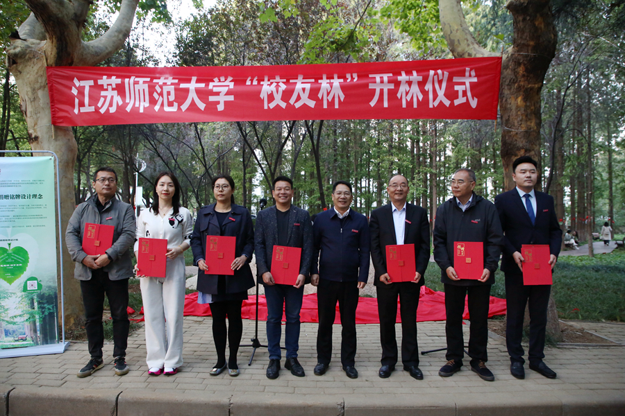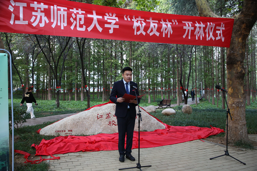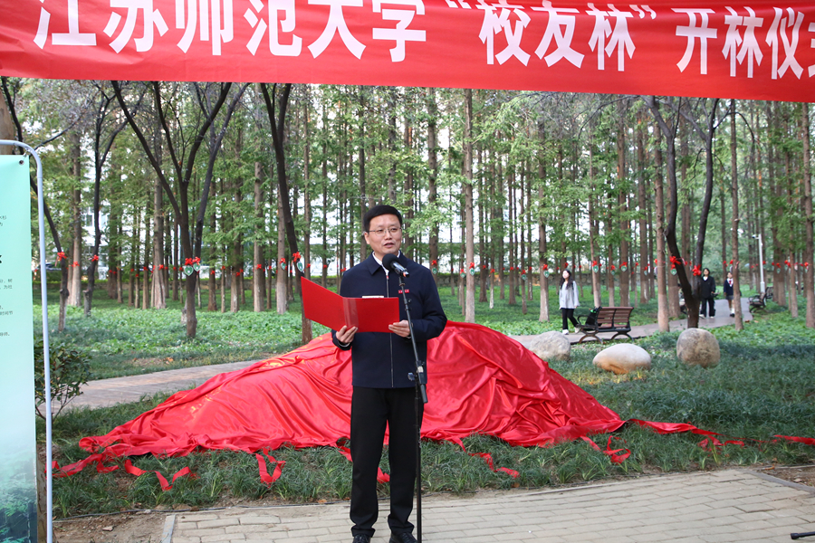 为加强校园文化和校友文化建设,打造校友感恩于心、铭志于树、寄情于林的情感家园,发挥校友在感恩教育、文化传承和环境育人中的作用,10月25日下午,学校在水杉林举行“江苏师范大学校友林”开林仪式。校党委书记方忠,校长周汝光,校党委常委、副校长商亮,地方校友会、校友林树木认捐者、94届返校校友代表,学校相关部门和学院负责人、师生代表参加仪式。仪式由校党委常委、宣传部部长孟召学主持。