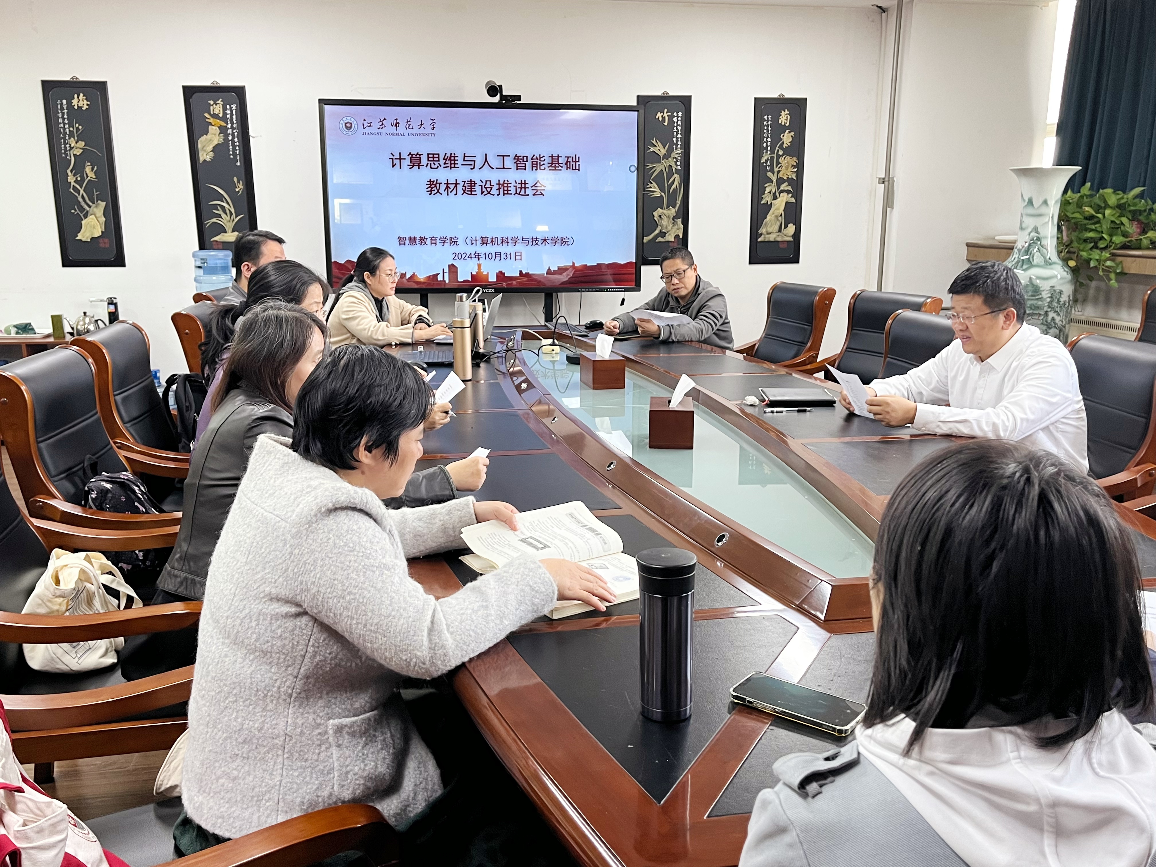2024年10月31日上午,智慧教育学院召开了计算思维与人工智能基础教材建设推进会。此次会议的主要目的是明确教材建设的目标和方向,以推动相关课程的改革与创新。会议由院长董永权教授主持,公共教学系教师参加了会议。