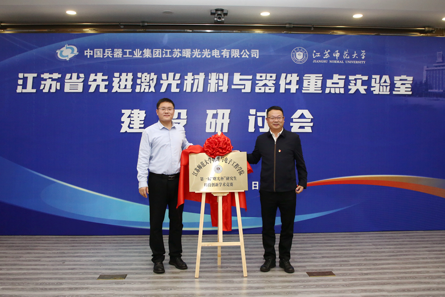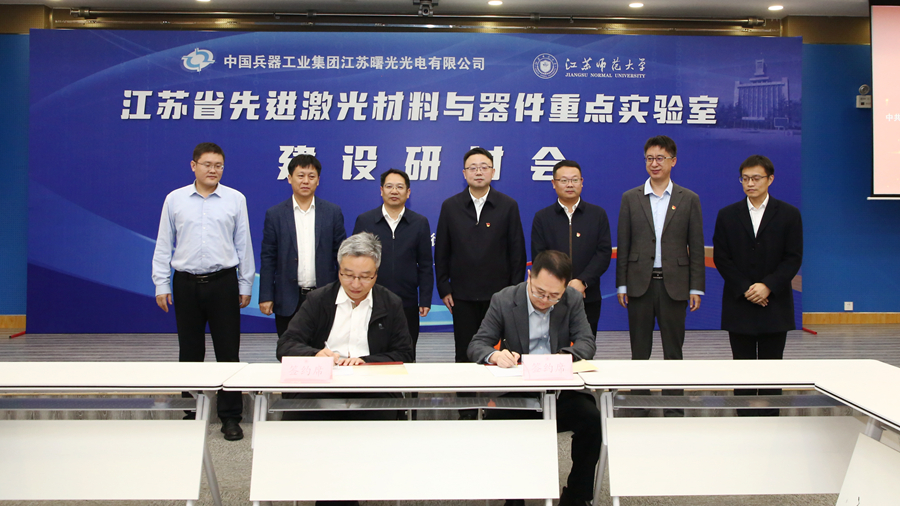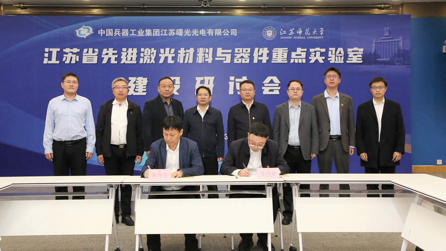 马炜介绍了公司的历史及事业发展情况。他表示,江苏曙光光电有限公司是国家技术创新示范企业,经过近50多年的建设与开拓,现已发展成为具有现代化的设计研发、试制生产及试验检测条件,集科研开发、生产试制、系统集成于一体的高科技企业。双方都具有鲜明的红色基因,相似的文化传承也为相互的合作奠定了坚实基础,公司将全力支持实验室的建设和发展,以共建实验室和党建工作联盟为契机,深入推进与江苏师范大学在资源共享、优势互补、政产学研共赢等方面的合作交流,联合培养专业化人才,积极推动研究成果转化,积极推进先进激光材料与器件的创新应用。