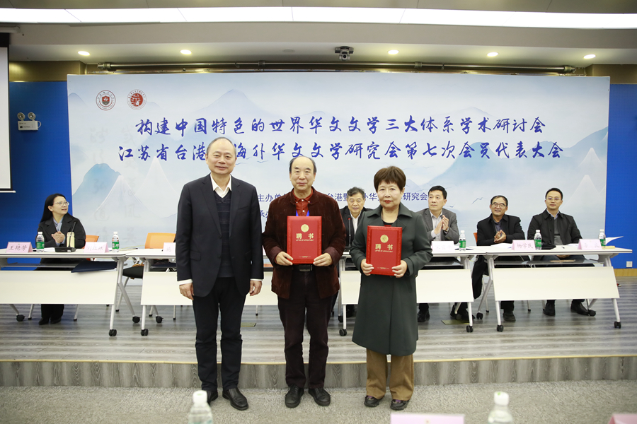 11月23日,由江苏省台港暨海外华文文学研究会主办,江苏师范大学文学院承办的“构建中国特色的世界华文文学三大体系学术研讨会暨江苏省台港暨海外华文文学研究会第七次会员代表大会”在我校召开。校党委常委、副校长娄峥嵘,江苏省台港暨海外华文文学研究会会长方忠,徐州市社科联副主席宋宜平等领导出席会议并致辞。来自江苏省社科院、南京大学、南京师范大学、南通大学、江苏师范大学等单位的专家学者共50余人参加会议。