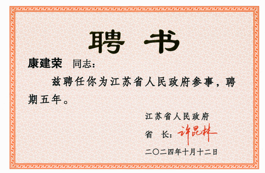 本次省政府共新聘任15名参事,均为来自各行业领域的知名专家和学者,体现了省政府对高水平智力支持的重视。康建荣教授作为新聘任的省政府参事,将围绕政府中心工作,积极履行参政议政、建言献策的重要职能,并对政府工作进行监督,同时康建荣教授将继续发挥自身学术优势和参政经验,为省政府科学决策提供有力支持,为进一步推动学校与地方经济社会的深度融合与协同发展贡献力量。